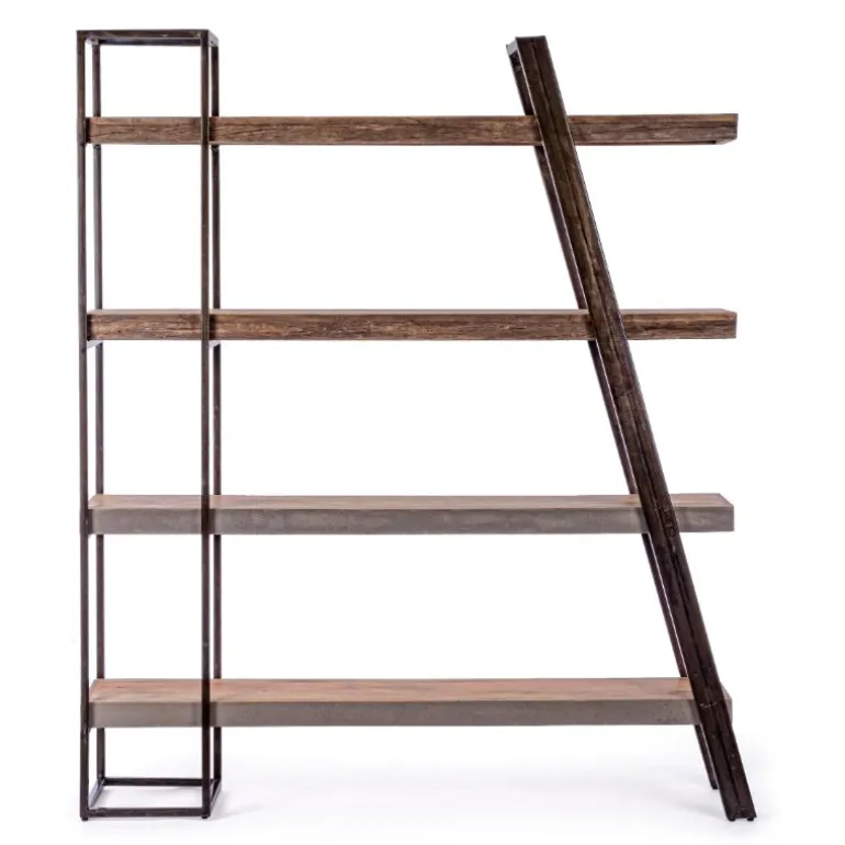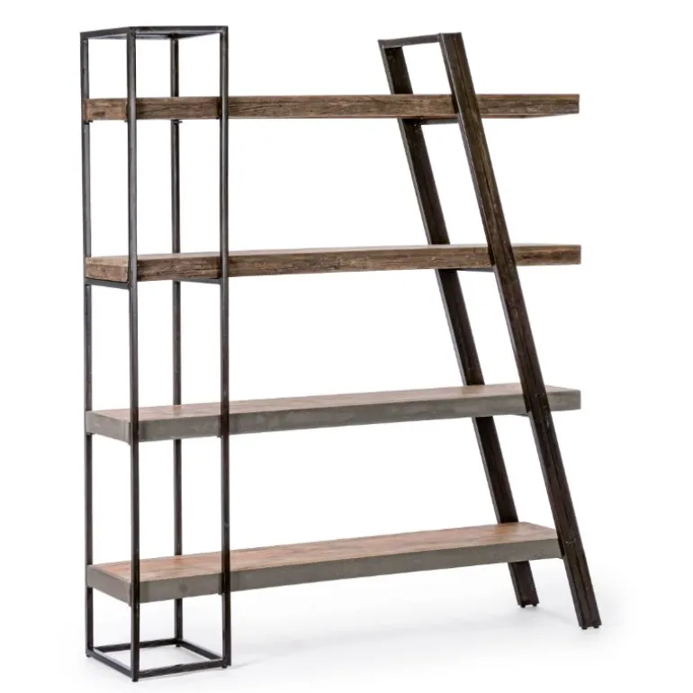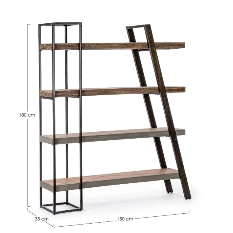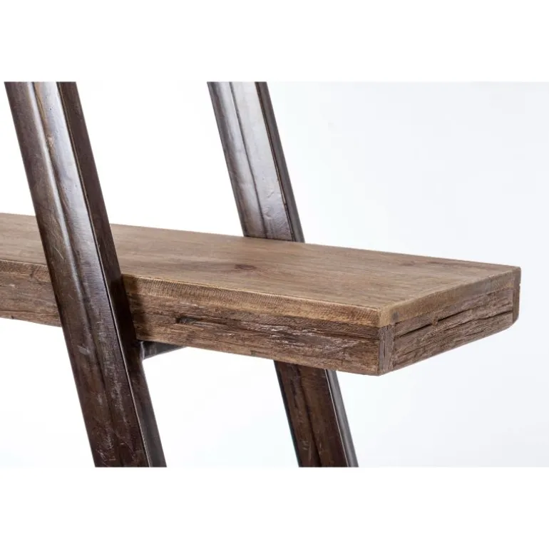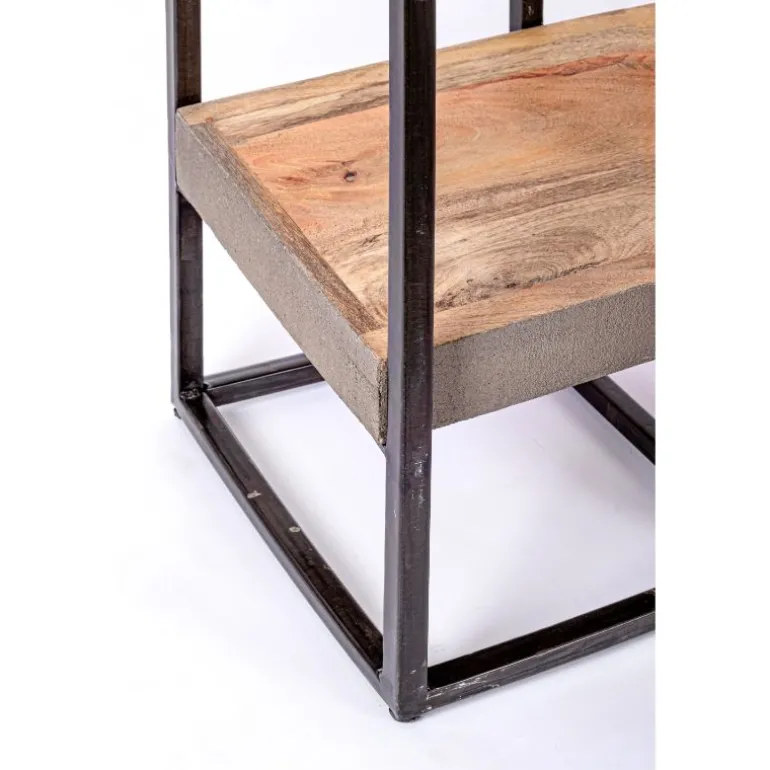 Estructura de madera de mango y acero. baldas de madera reciclada o lámina de acero o acabadas en fibra de cemento. acabado acrílico de protección. el producto de madera reciclada se caracteriza por la presencia de tacos de madera de diferentes formas y colores. las grietas, fisuras o imperfecciones, que también pueden generarse con el tiempo, son características de este material y hacen que cada pieza sea única y original. para montar.