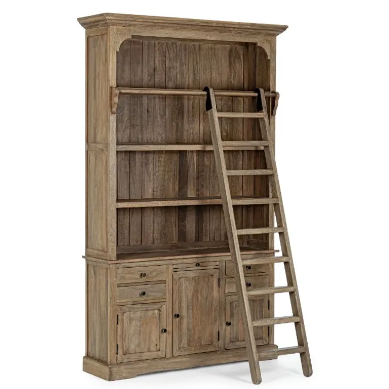 Gran librería con escalera incluida, ideal para el salón de estilo rústico.