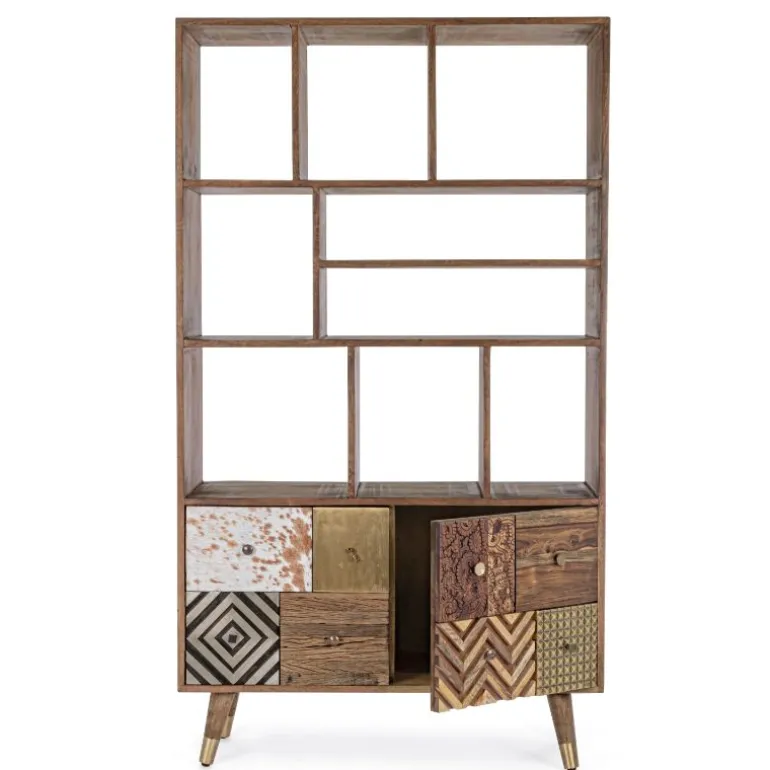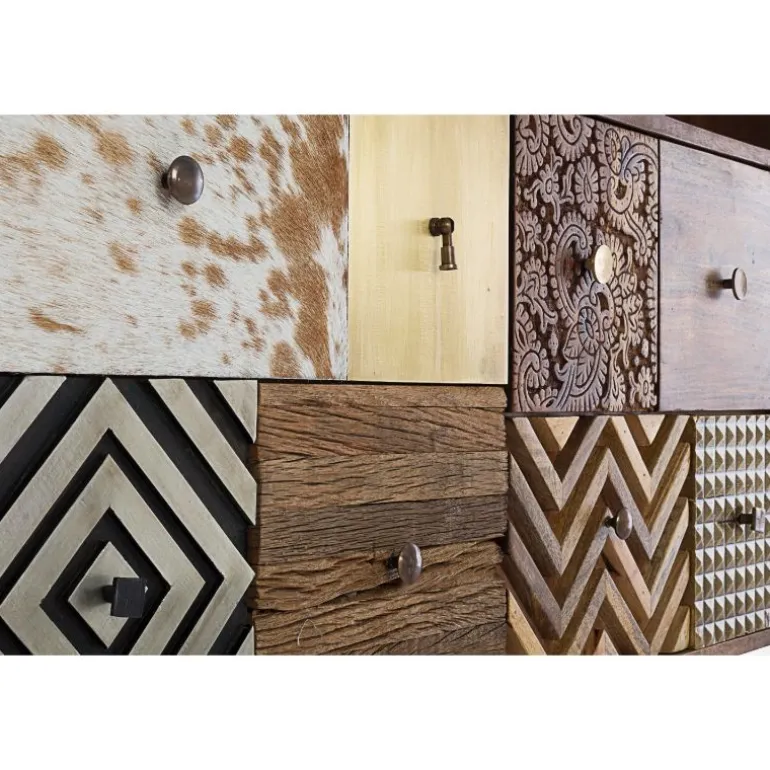 Estructura de madera de mango, parte trasera de dm. parte frontal de las puertas de madera reciclada de mango y acacia. acabado con barniz a base de agua. tiradores de acero.