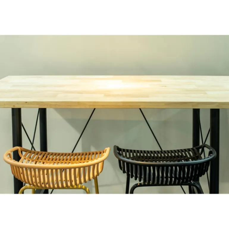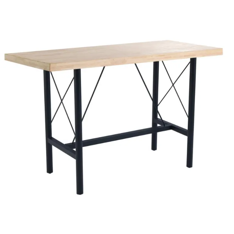 Mesa alta cuadrada de estilo industrial, con estructura metálica de color negro y tapa de madera de 54 mm. de grosor en color roble Americano y Nórdico. de madera de roble maciza (fabricado a base de láminas de madera maciza entrelazadas). Perfecta para espacios reducidos, o esa esquina desaprovechada en tu salón comedor. Con esta mesa podrás darle a tu espacio un estilo industrial urbano, destacando por su elegancia y singularidad.