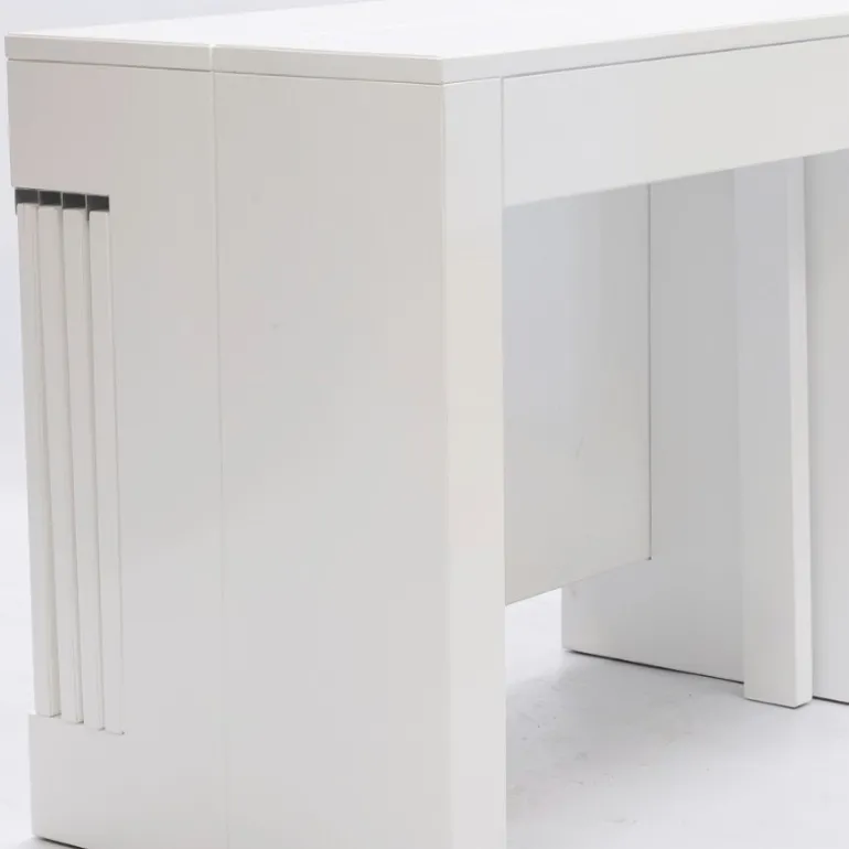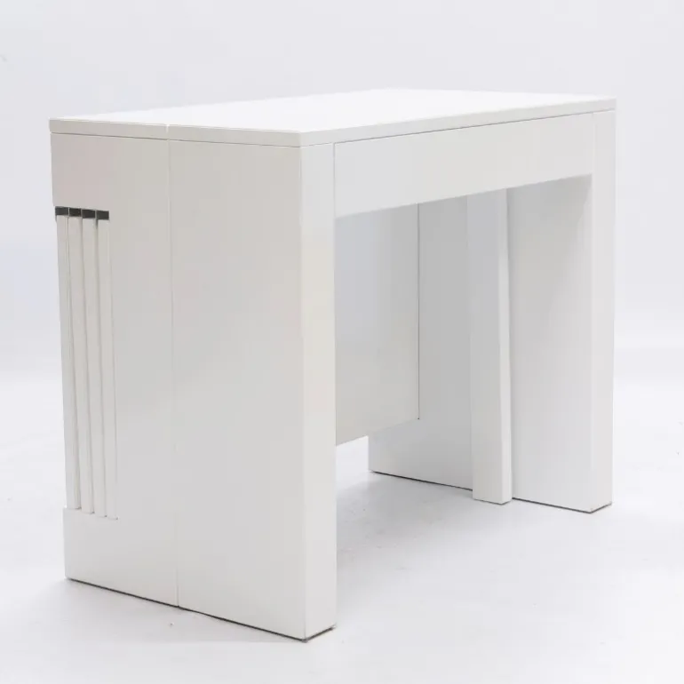 Muy práctica, porque de consola pude pasar a ser una mesa de hasta 230 cm de largo, o menor tamaño, incluyendo tantas extensiones de 45 cm como necesites (dispone de 4 extensiones de 45 cm).