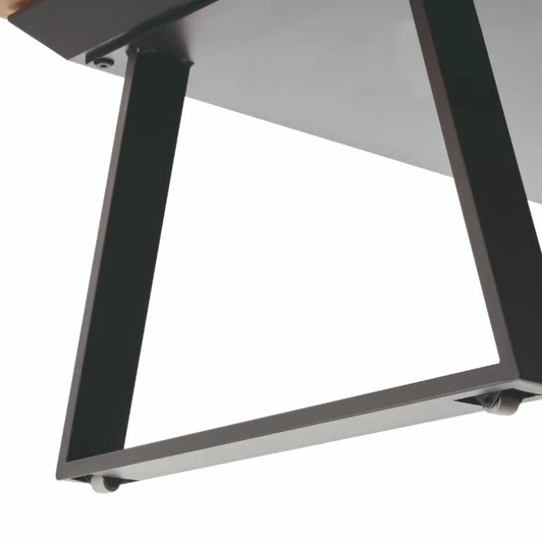 Mesa robusta y de alta calidad gracias a su fabricación en madera natural y patas metálicas.