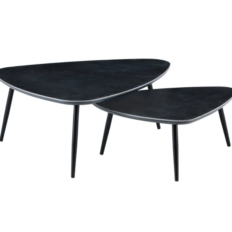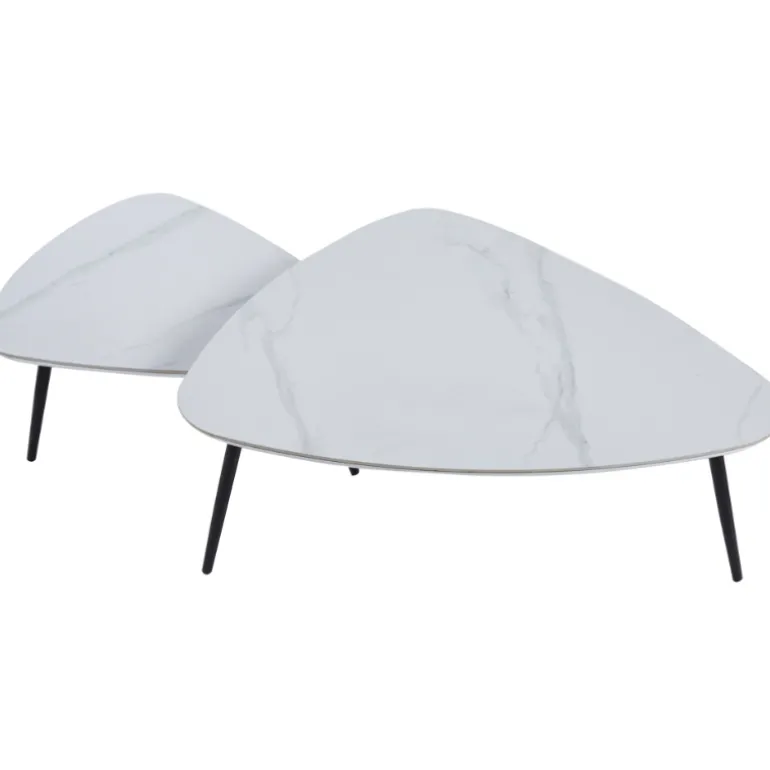 Juego de 2 mesas de centro nido, de tapas con acabado superior cerámico en color negro o blanco, y patas metálicas negras. Muy moderna y elegante, que combinará con cualquier decoración.