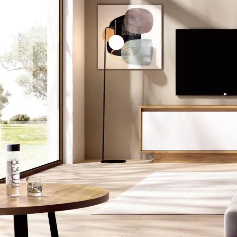 Mesa de centro redonda con patas metálicas color grafito. Con un diseño muy actual, de estilo industrial, pero que encaja en cualquier tipo de decoración a la perfección. En acabado melamínico. Con una resistente tapa de 5 cm de grosor.