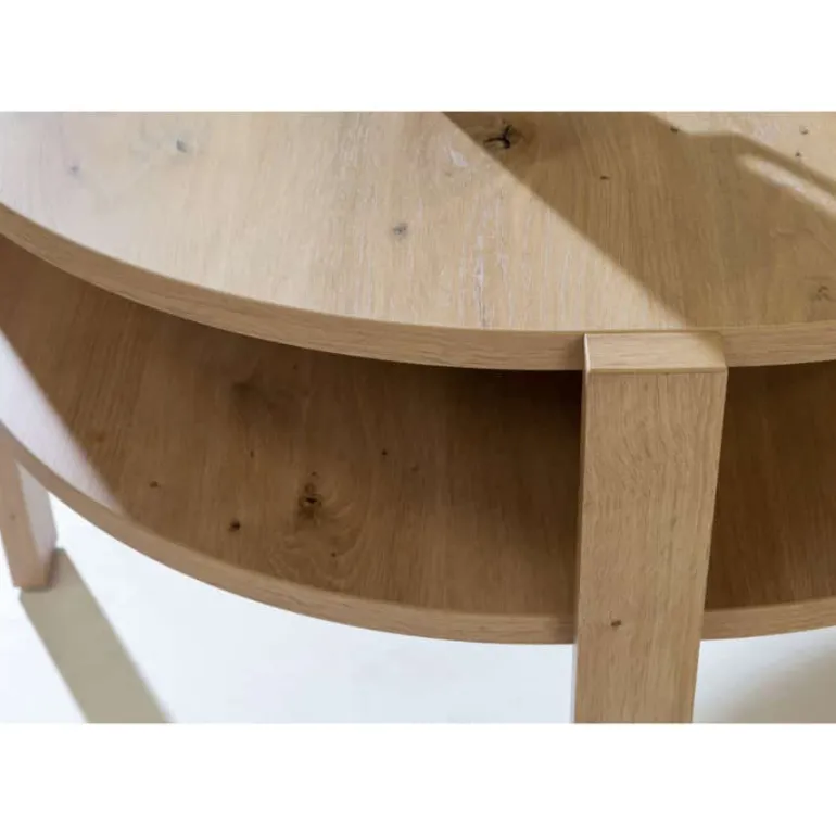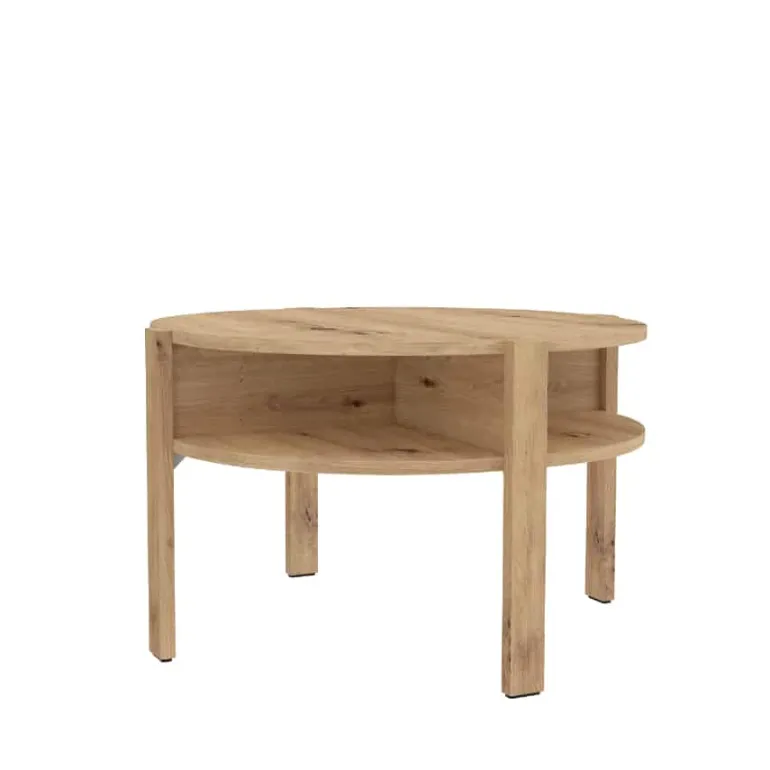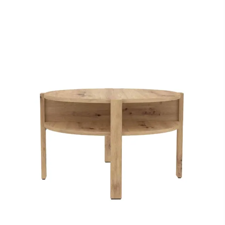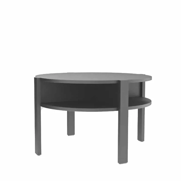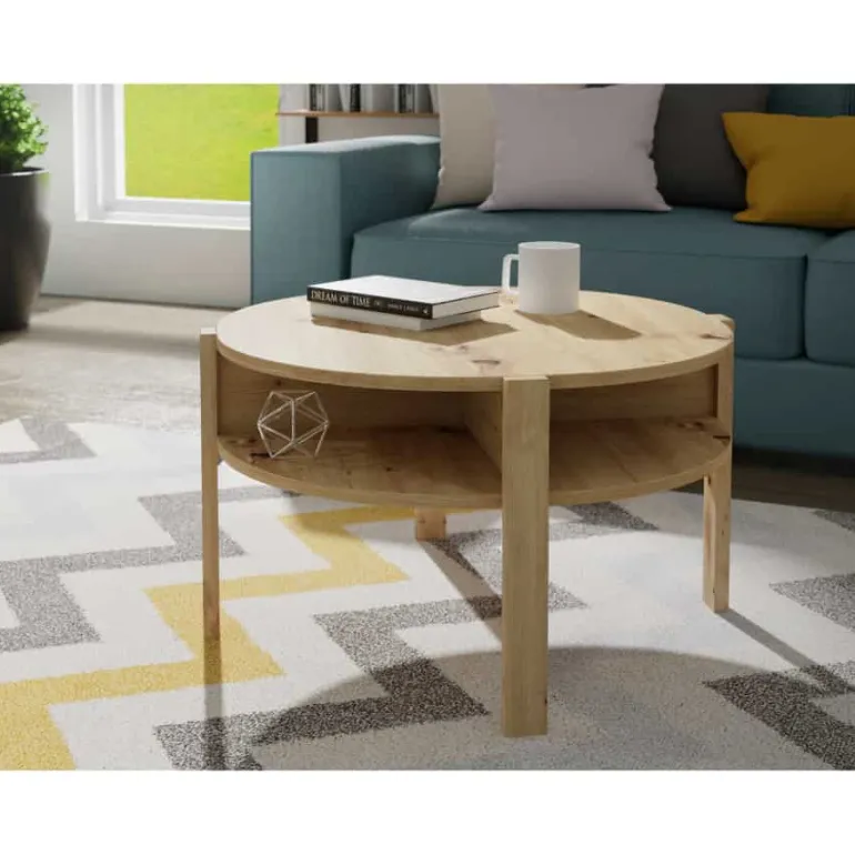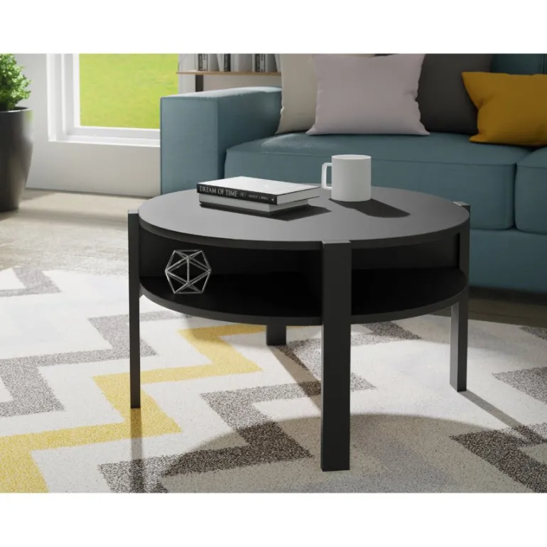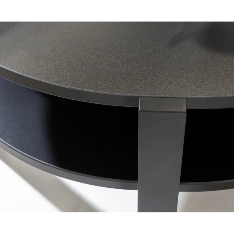 Moderna mesa de centro redonda en acabado melamínico roble con nudos y gris oscuro, acabado. Con un diseño muy moderno en tonos que combinan a la perfección con cualquier espacio y mobiliario moderno o contemporáneo.