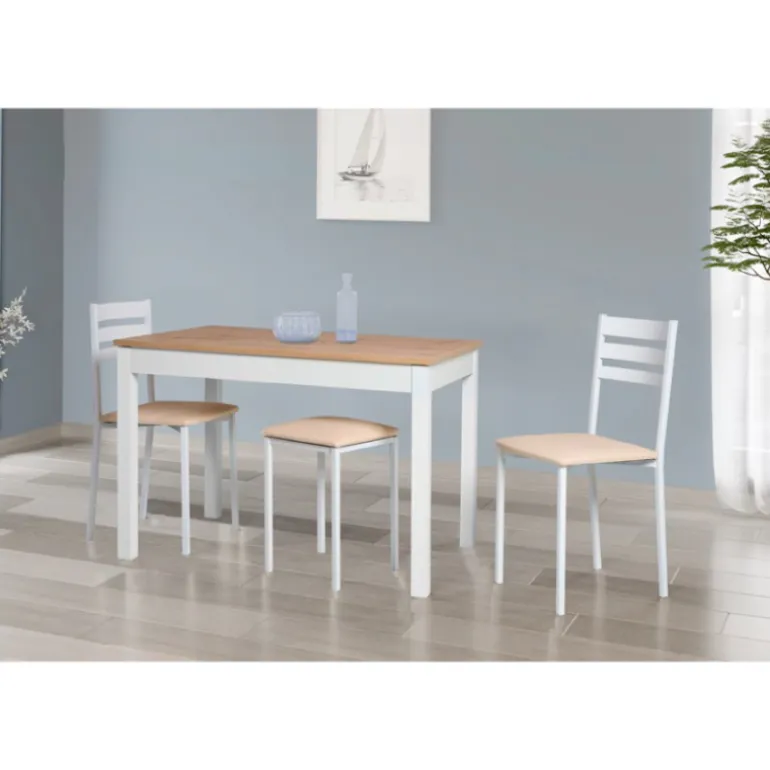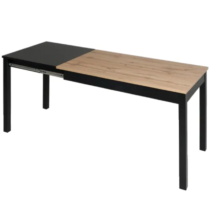 Mesa de cocina extensible de carro. Con estructura y patas metálicas en diferentes colores. Con un diseño muy actual y práctico, pero que encaja en cualquier tipo de decoración a la perfección. La extensión se desliza desde el lateral, junto con las patas y la estructura, manteniendo al firmeza de la misma.