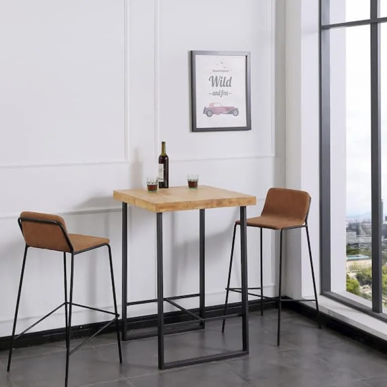 Mesa alta cuadrada de estilo industrial, con estructura metálica de color negro y tapa de madera de 54 mm. de grosor en color roble Americano y Nórdico. de madera de roble maciza (fabricado a base de láminas de madera maciza entrelazadas). Perfecta para espacios reducidos, o esa esquina desaprovechada en tu salón comedor. Con esta mesa podrás darle a tu espacio un estilo industrial urbano, destacando por su elegancia y singularidad.
