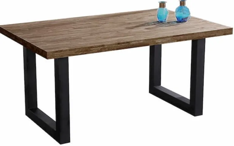 Mesa de comedor en papel laminado color roble y patas forjadocolor negro. Una mesa para durar muchos años que combina con todo tipo de estilos. Un concepto muy moderno de una mezcla de estilos industrial y urbano. Personaliza y haz único tu comedor.