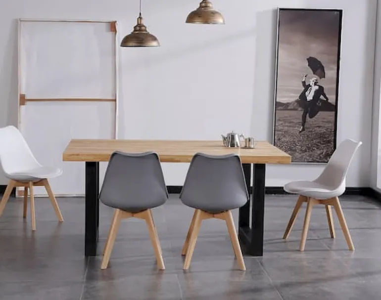 Disponible en tres combinaciones posibles: Mesa roble America y patas negras; Roble Nordish y patas blancas o negras. Escoge la combinación que mejor encaje con tu comedor y estilo.