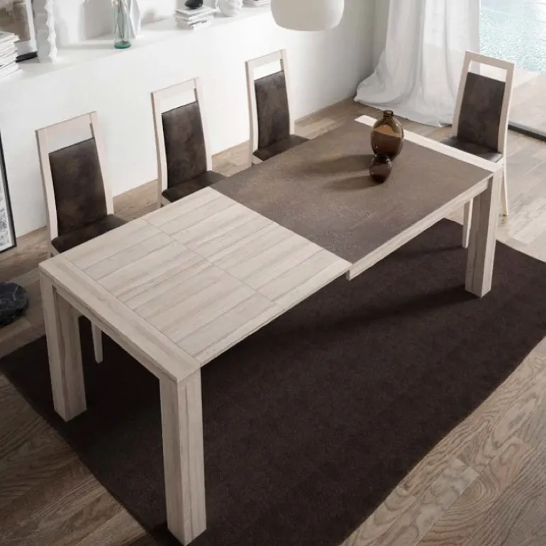 En acabado melamínico madera o laminado fenólico que imita piedra o mármol, que dará al centro de tu comedor un aspecto muy elegante. El laminado no se aplica sobre los extensiones.