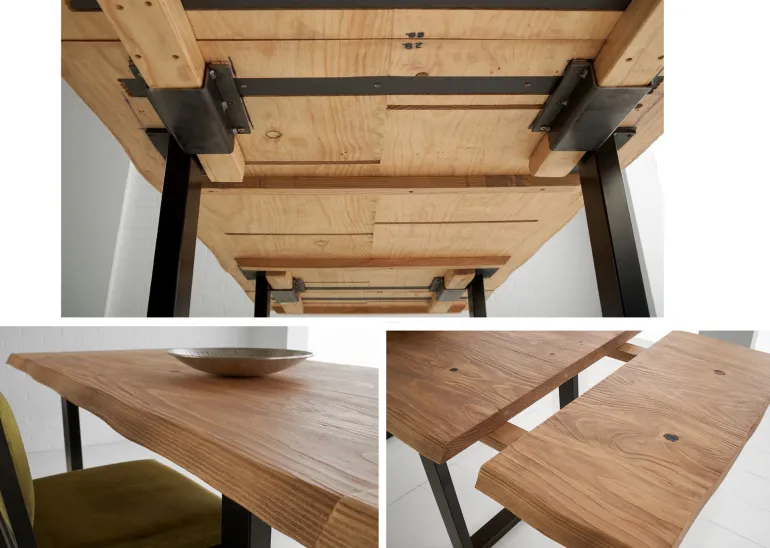 La mesa de comedor extensible atemporal, combina hierro y madera encajando a la perfección tanto en ambientes modernos como atemporales, marcando tendencia en el estilo de decorar con la madera más natural y elementos metálicos. Lo singular de nuestras creaciones, no existen dos muebles iguales cada cual es diferente según lo que la madre naturaleza haya creado.
