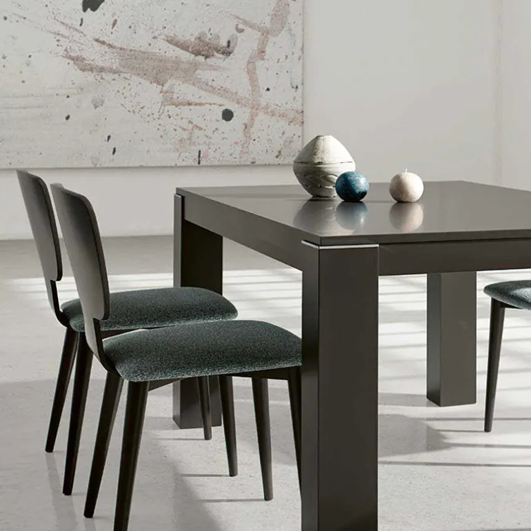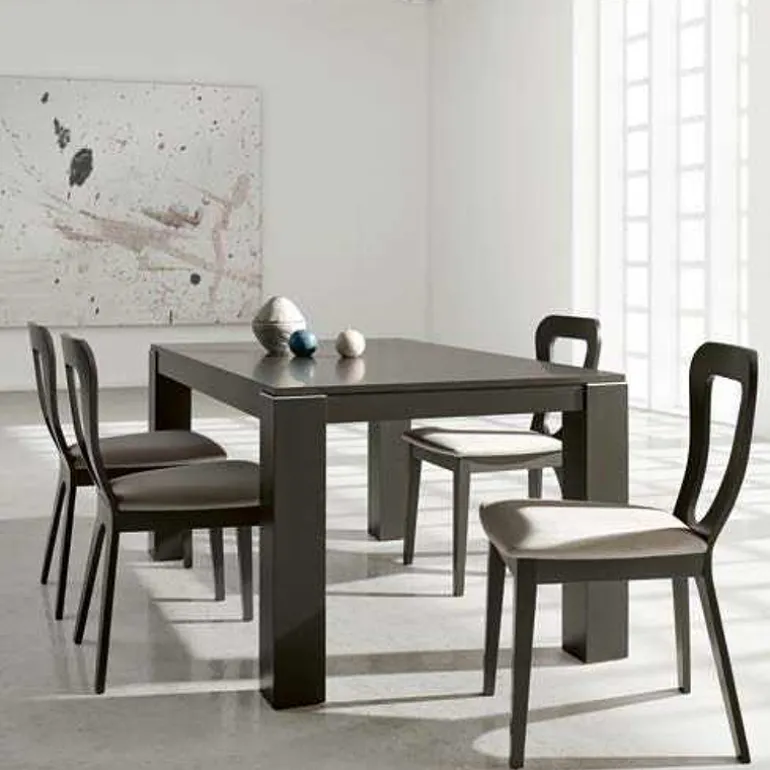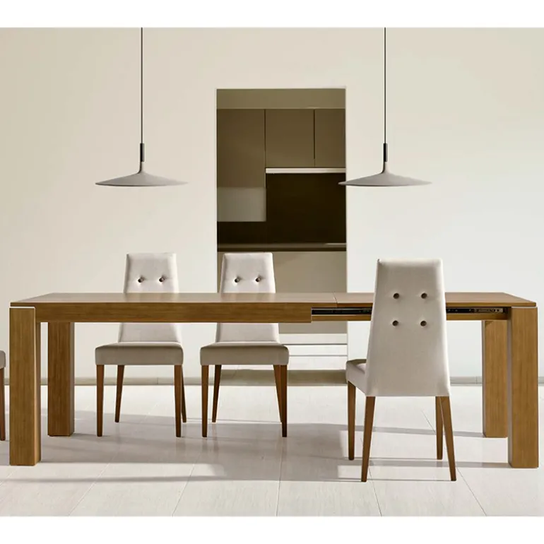 Moderna mesa de comedor extensible fabricada en chapa de madera de Roble o Haya, y también Lacada.