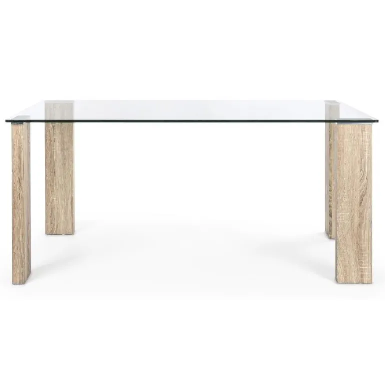 Patas de madera dm recubiertas con laminado efecto roble. Tapa de vidriotemplado de espesor 12mm.