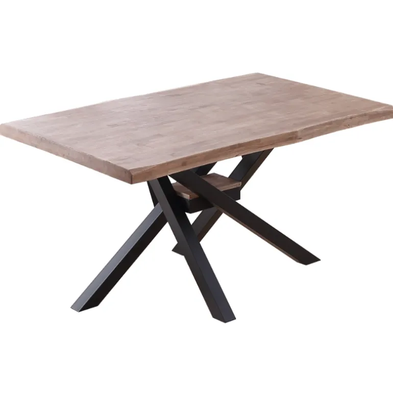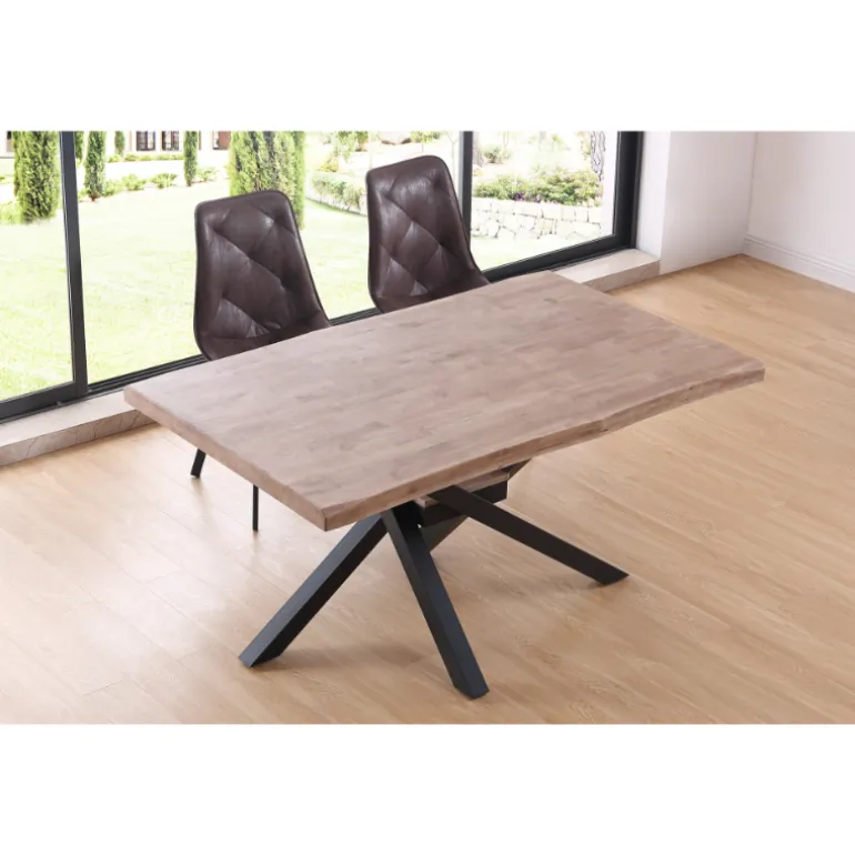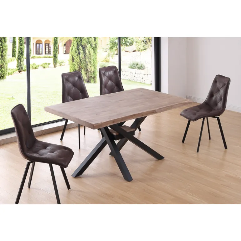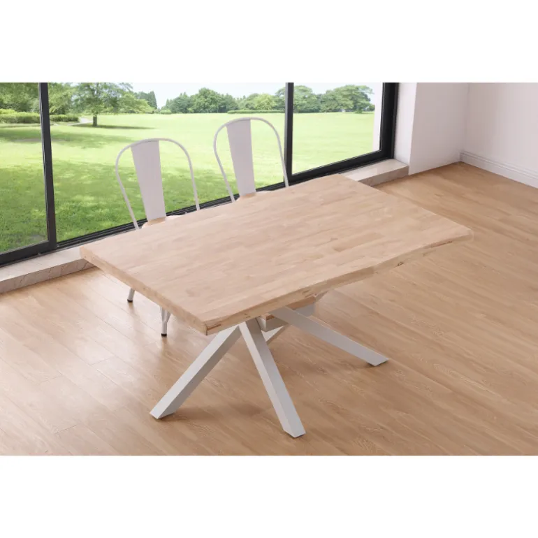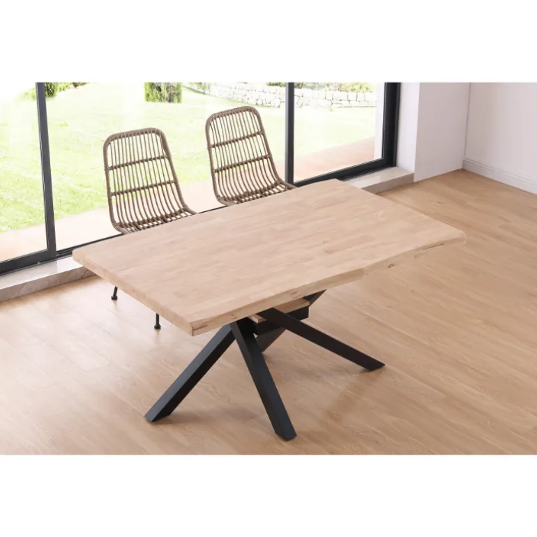 Mesa de comedor de madera de roble maciza (fabricado a base de láminas de madera maciza entrelazadas) y patas forjado color negro o blanco, con una pequeña forma dándole un estilo rústico. Una mesa para durar muchos años que combina con todo tipo de estilos. Un concepto muy moderno de una mezcla de estilos industrial y urbano. Personaliza y haz único tu comedor.
