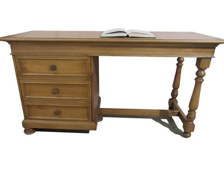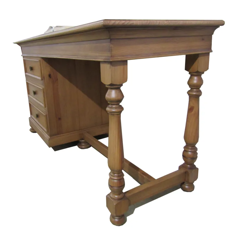 Mesa deescritorio fabricada enpino macizo seleccionado de primera calidad, con acabado teñido envejecido. Dispone de3 cajones para poder guardar todo lo necesario.