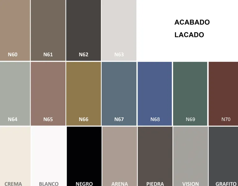 | Lacado Patas | LACADO ARENA, LACADO BLANCO, LACADO CREMA, LACADO GRAFITO, LACADO N60, LACADO N61, LACADO N62, LACADO N63, LACADO N64, LACADO N65, LACADO N66, LACADO N67, LACADO N68, LACADO N69, LACADO N70, LACADO NEGRO, LACADO PIEDRA, LACADO VISION |