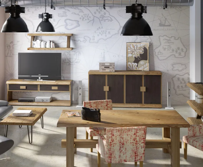 Un concepto muy moderno de estilo industrial urbano, ideal para los que les gusta estar a la última en decoración. Personaliza y haz único tu salón o comedor.
