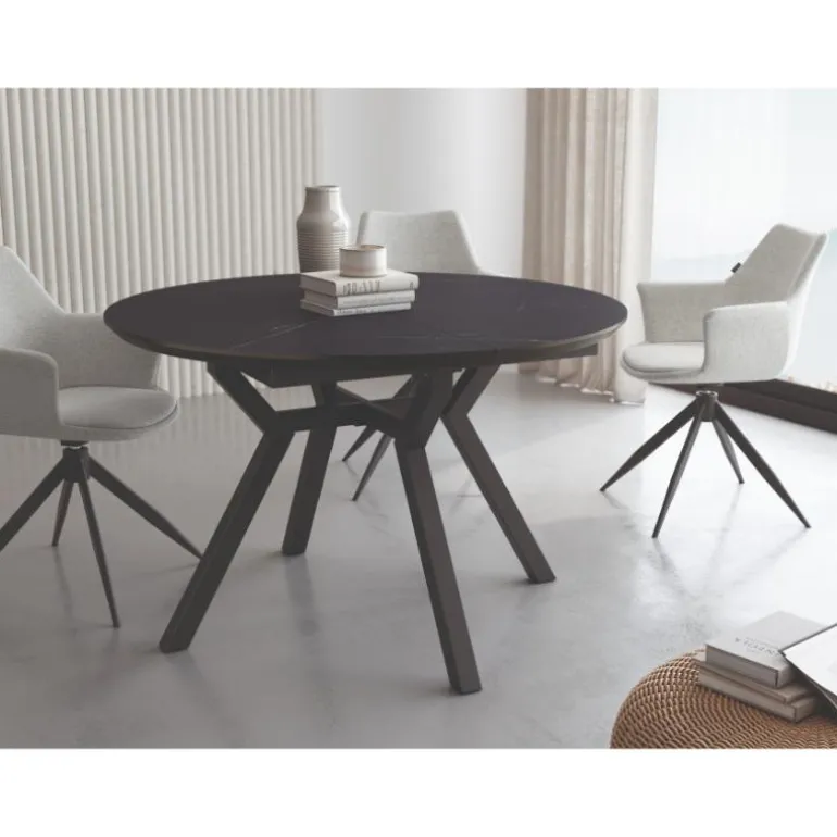 Mesa redonda extensible mármol moderna en 3 tonos de porcelánico.