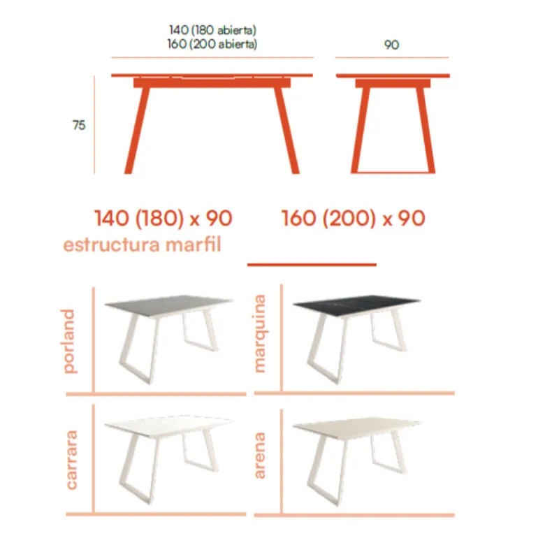 | Acabado | Arena, Carrara, Porland, Marquina |