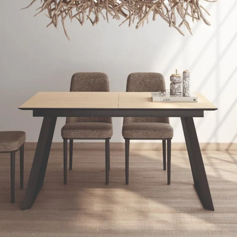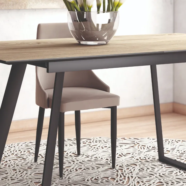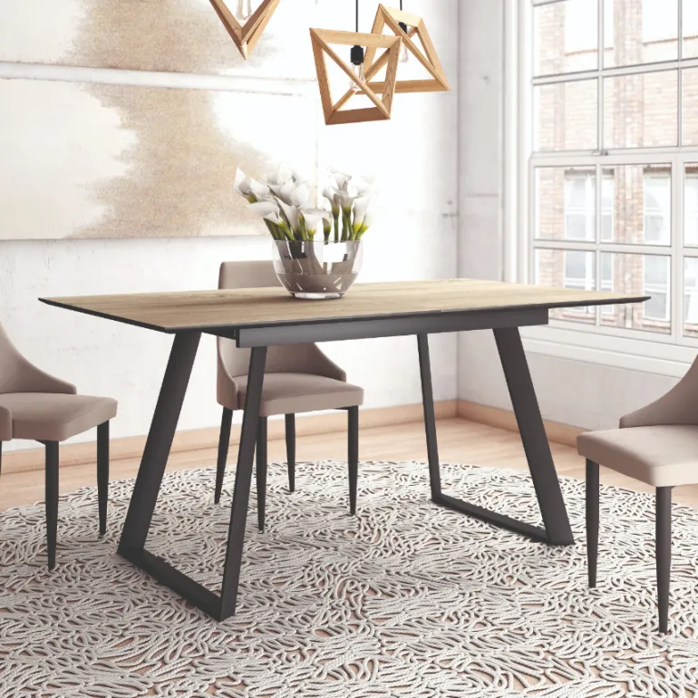 El dúo metal y el acabado de madera es una combinación muy actual. Mesa extensible moderna de estilo actual.