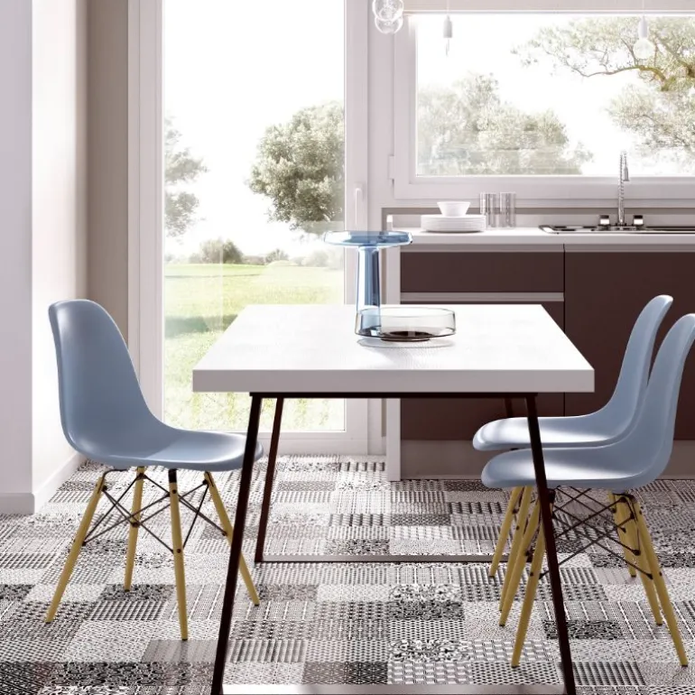 Gracias a sus líneas rectas y la posibilidad de elegir su acabado entre todos los colores base, hace que esta mesa de comedor se adapte de maravilla a todo tipo de comedores. Permite total personalización al poder elegir el acabado del sobre entre cualquiera de los acabados base disponibles