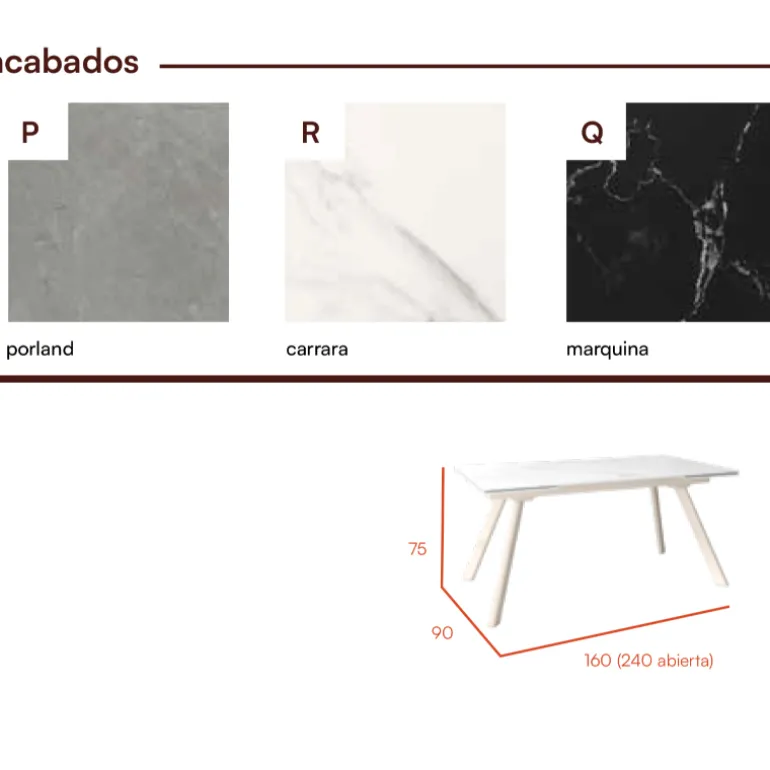 Mesa Nora, Mesa de comedor extensible con encimera de mármol natural: Porland, Carrara, Marquina. Con patasmetálicas en acabado blanco (Disponible con patas negras en ésta web). Perfecta para salones o cocinas modernas, de 160 cm de larga extensible hasta 240 cm, para de 4 a 10 comensales. Mesa de comedor con un diseño muy actual, de estilo industrial y urbano, pero que encaja en cualquier tipo de decoración a la perfección. Escoge la combinación que encaje mejor con tu estilo, las posibles combinaciones diferentes porcelánicos y metales.
