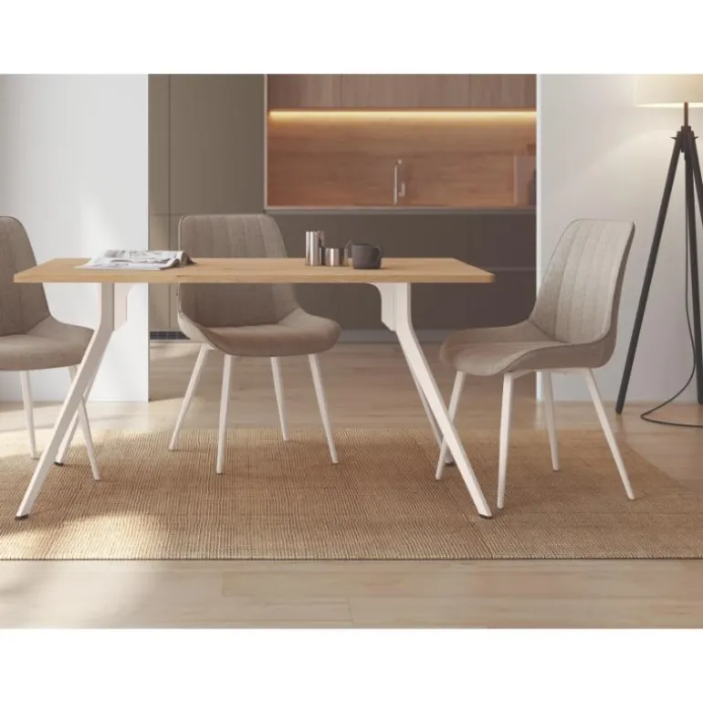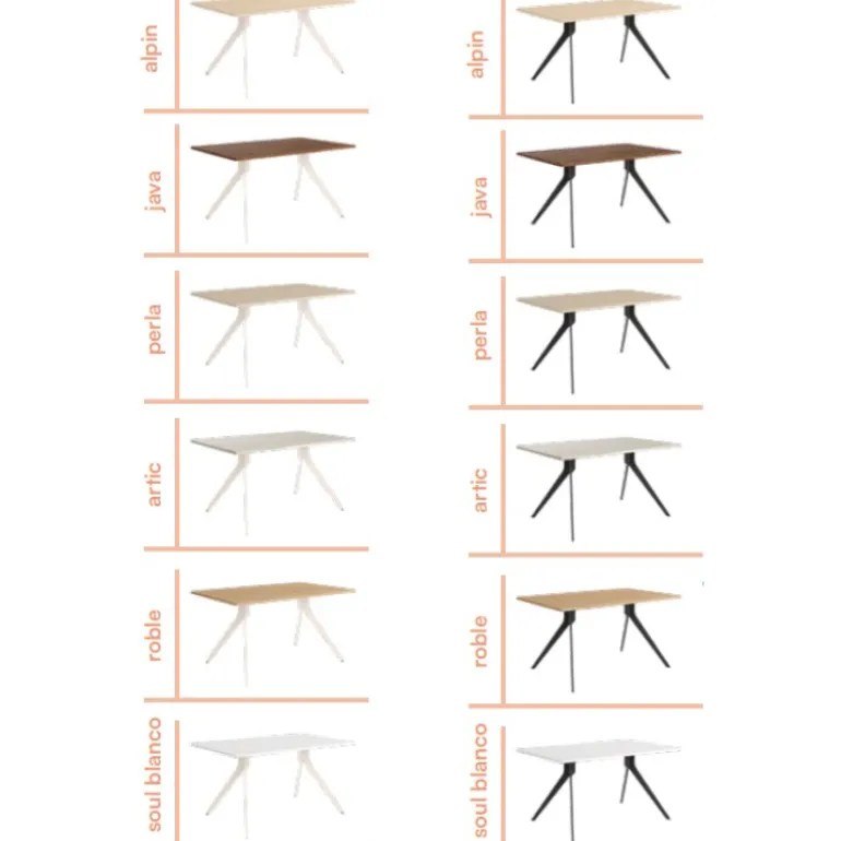 Mesa rectangular Egeo, Mesa de comedor rectangular con esquinas redondeadas, en sobre en diferentes acabados de eco-maderas y lisos a escoger, y patasmetálicas muy originales en acabado blanca (también disponible negra). Perfecta para espacios reducidos, de 140cm, 160cm o 180cm, para 6-8 comensales. Mesa de comedor redonda con un diseño muy actual, de estilo industrial y urbano, pero que encaja en cualquier tipo de decoración a la perfección. Escoge la combinación que encaje mejor con tu estilo, las posibles combinaciones diferentes de maderas, con diferentes acabados a escoger en melamina hiperrealista, con la beta y nudos de la madera.