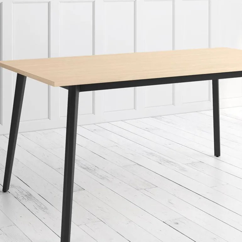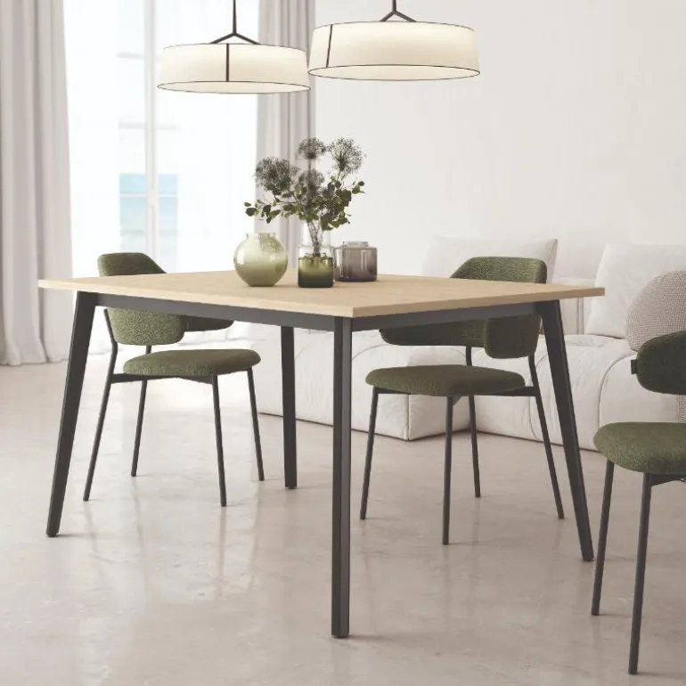 Mesa Thane, Mesa de comedor con sobre en diferentes acabados de eco-maderas y lisos a escoger, con patasmetálicas en acabado negro (Disponible con patas blancas en ésta web). Perfecta para espacios reducidos, en cuatro medidas de 120, 140, 160 y 180 cm, para de 4 a 8 comensales. Mesa de comedor con un diseño muy actual, de estilo industrial y urbano, pero que encaja en cualquier tipo de decoración a la perfección. Escoge la combinación que encaje mejor con tu estilo, las posibles combinaciones diferentes de maderas, con diferentes acabados a escoger en melamina hiperrealista, con la beta y nudos de la madera.