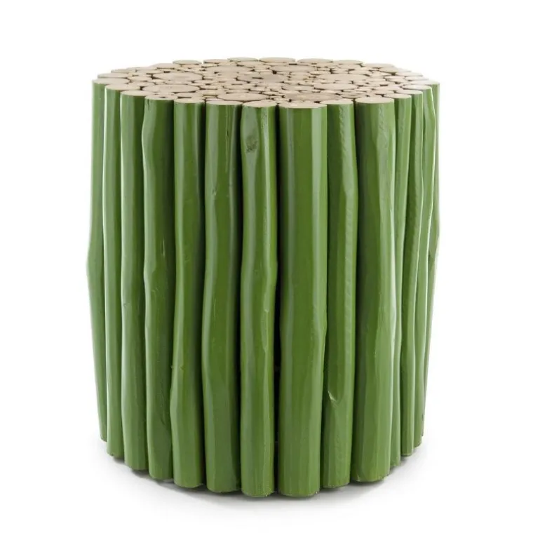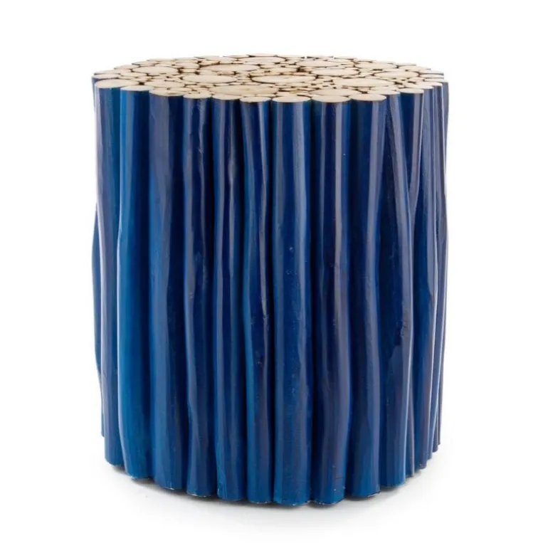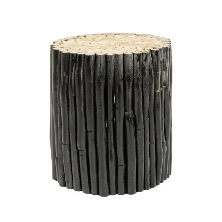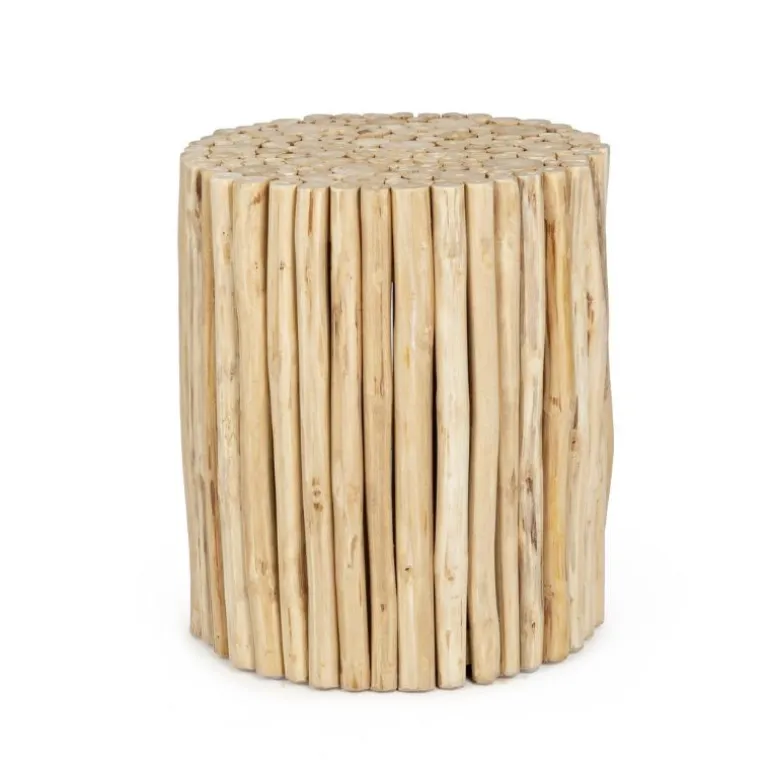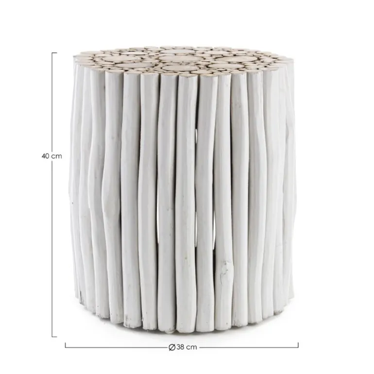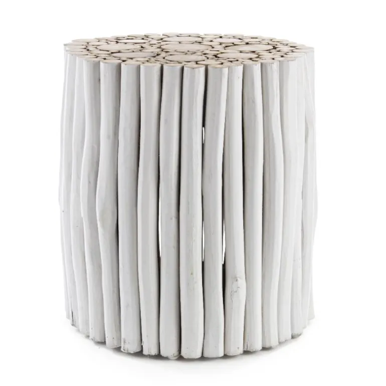 Mesita auxiliar de ramas de Teca maciza, decapadas con acabado de nitrocelulosa blanca.
