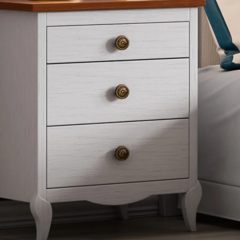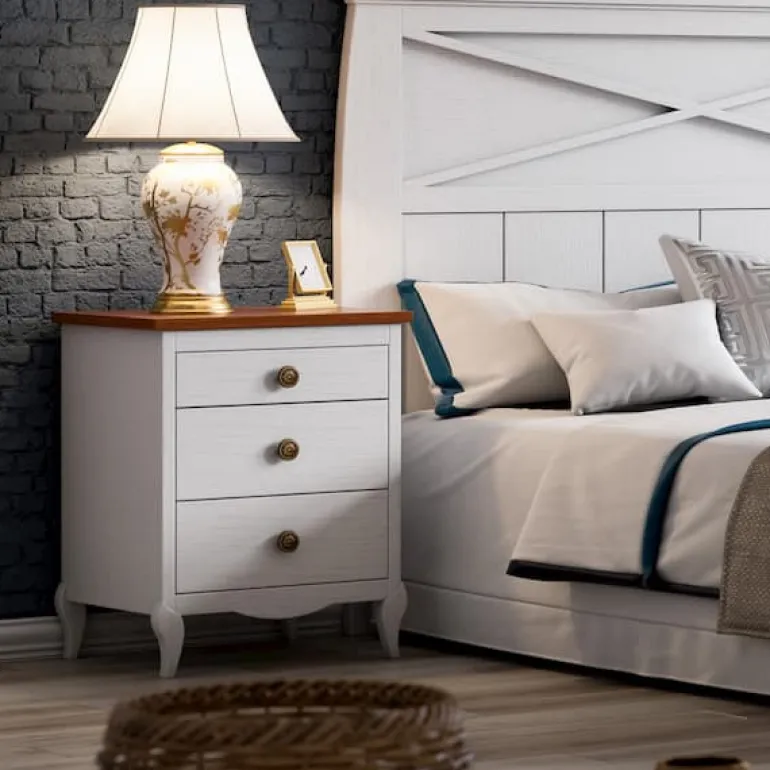 Mesita de noche paracama de matrimonio con 2cajones, en chapa de roble poro abierto blanco, con un tercer cajón pequeño superior para guardar el teléfono, libro, reloj, etc. Un contraste de acabados que otorga elegancia,moderno y ligero.