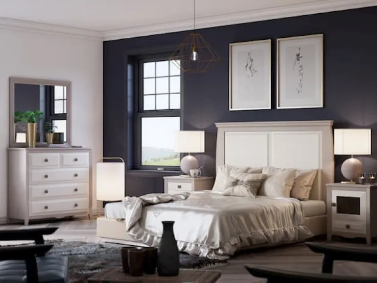 Disponible en la web ésta composición completa de dormitorio de matrimonio para conseguir un dormitorio uniforme y elegante.