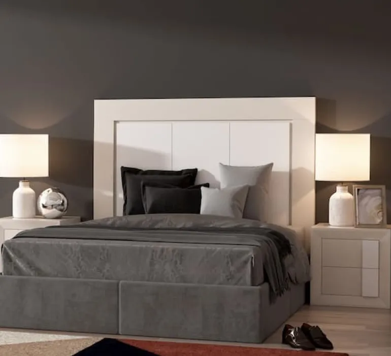 Disponible en la web ésta composición completa de dormitorio de matrimonio para conseguir un dormitorio uniforme y elegante.