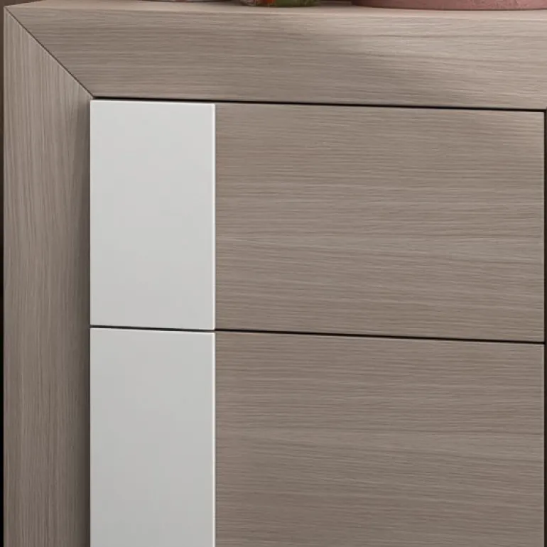 Mesita de noche paracama de matrimonio, acabadoRoble Natural y tiradores enlacado blanco, que le otorga un contraste muy elegante,moderno y ligero.