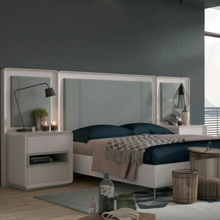 Disponible en la web ésta composición completa de dormitorio de matrimonio para conseguir un dormitorio uniforme y elegante.