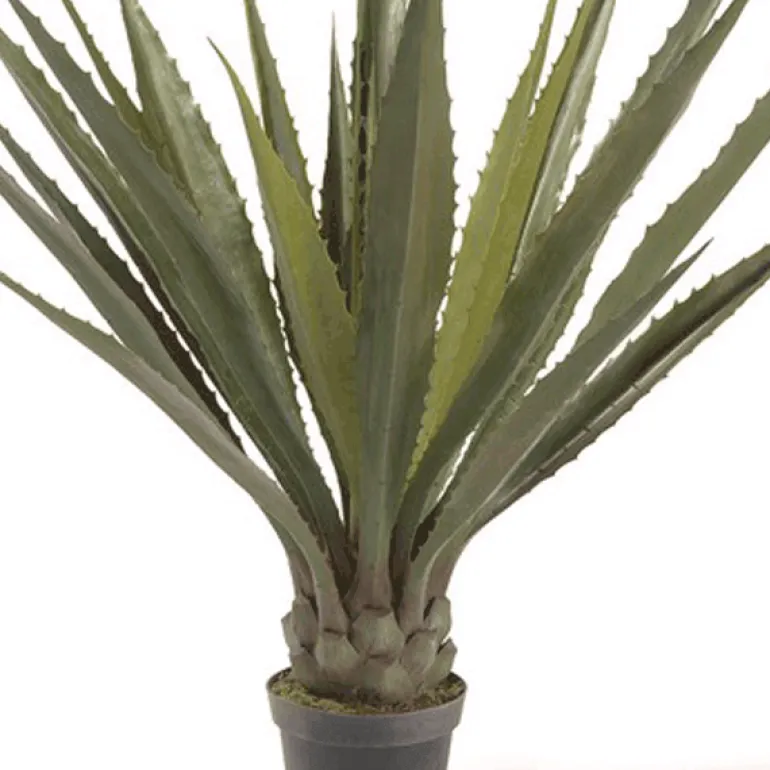 Réplica de Planta Agave acabado corona ancha, de estética elegante con grandes hojas gruesas acabadas en punta. Una planta espectacular para cualquier tipo de ambiente, con un nivel de realismo muy alto y no requiere ningún tipo de mantenimiento. Incluye macetero básico.