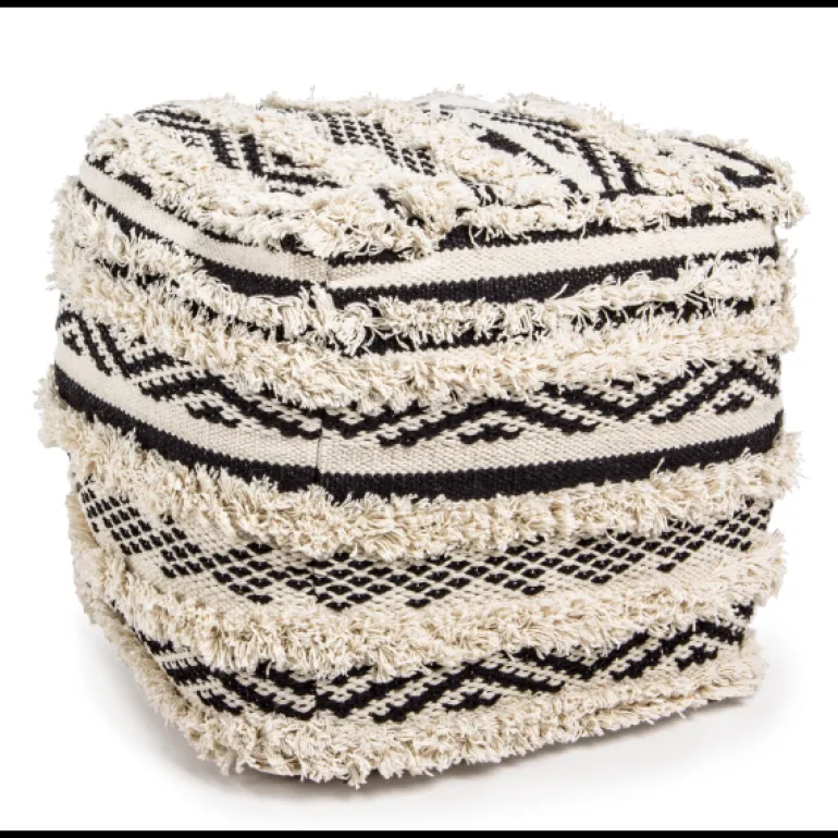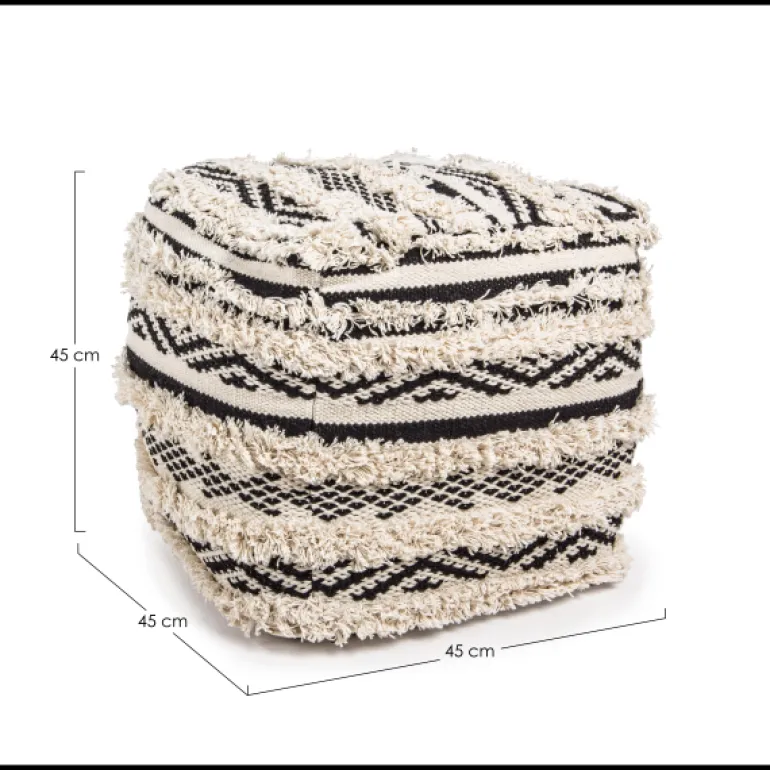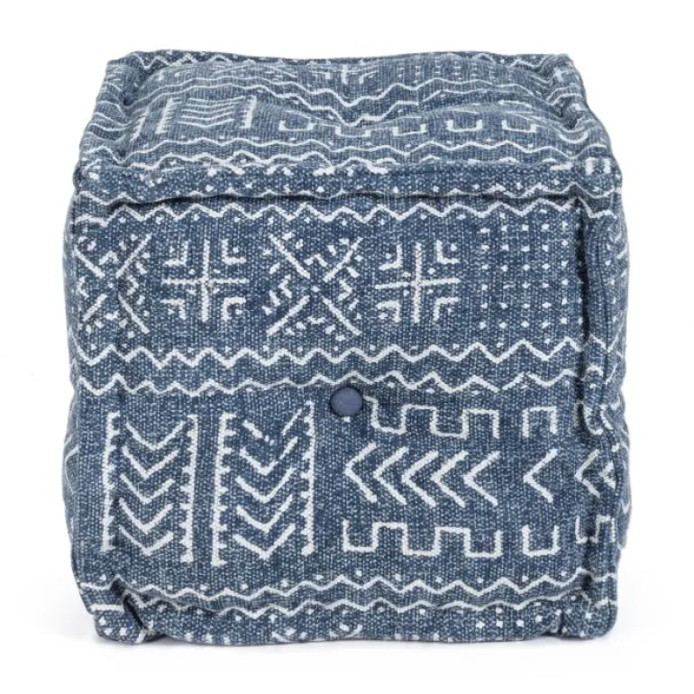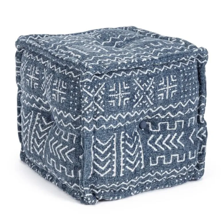 Pouf acolchado, tapizado 100% algodón. elaboración artesanal del colchón (hecha a mano). Relleno de fibras de algodón reciclado.