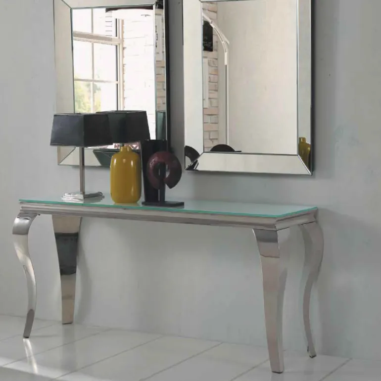 Precioso recibidor de estilo clásico con patas Isabelinas. Consola cromada en su totalidad, otorgando elegancia al recibidor. Por sus formas y estilo podrás ubicarlo tanto en ambientes modernos como clásicos con aires renovados.