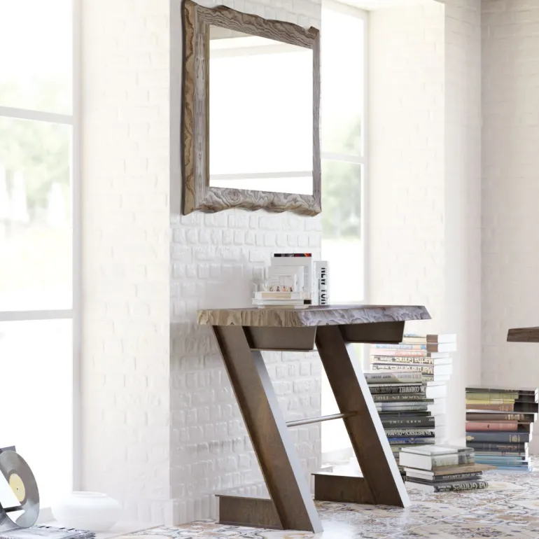 Recibidor defabricación artesanal, conopción de acabado en una de nuestras diferentes maderas seleccionadas del muestrario, y unos de los acabados de metal del muestrario.