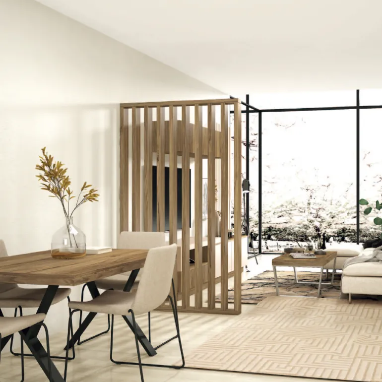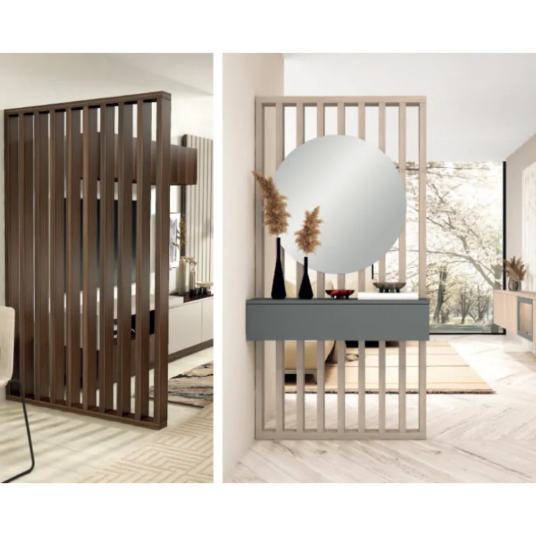 Separador de ambientes fabricado en 3 dimensiones de ancho 80, 100 y 120cm, y alto de 200cm, con listones de 4cm de grosor y de 11 cm de profundo.