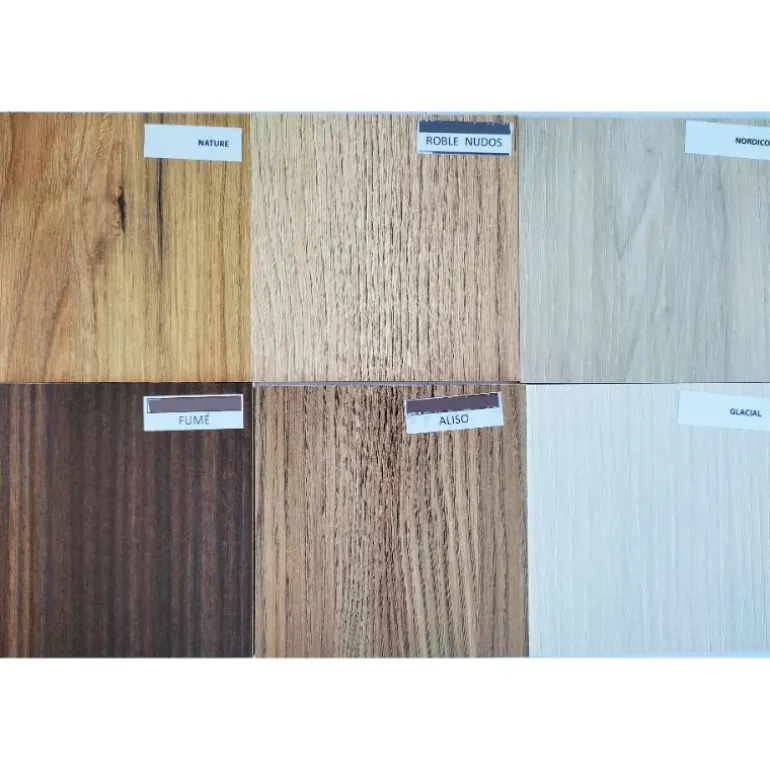 | Acabado | Glacial, Grafito, Aliso, Azul, Fumé, Gris, Maple, Marfil, Nature, Negro Poro, Nieve Poro, Nogal Nudos, Picasso, Roble Nudos, Visón, Vulcano, Piedra, Marmol, Cemento, Verde, Cerezo, Nórdico |