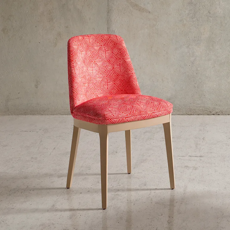 silla Abbot de comedor con asiento y respaldo tapizado acolchado, patas de madera de haya maciza muy resistente, en 4 tonos de diferentes a escoger. Y diferentes colores de tapizado a escoger.