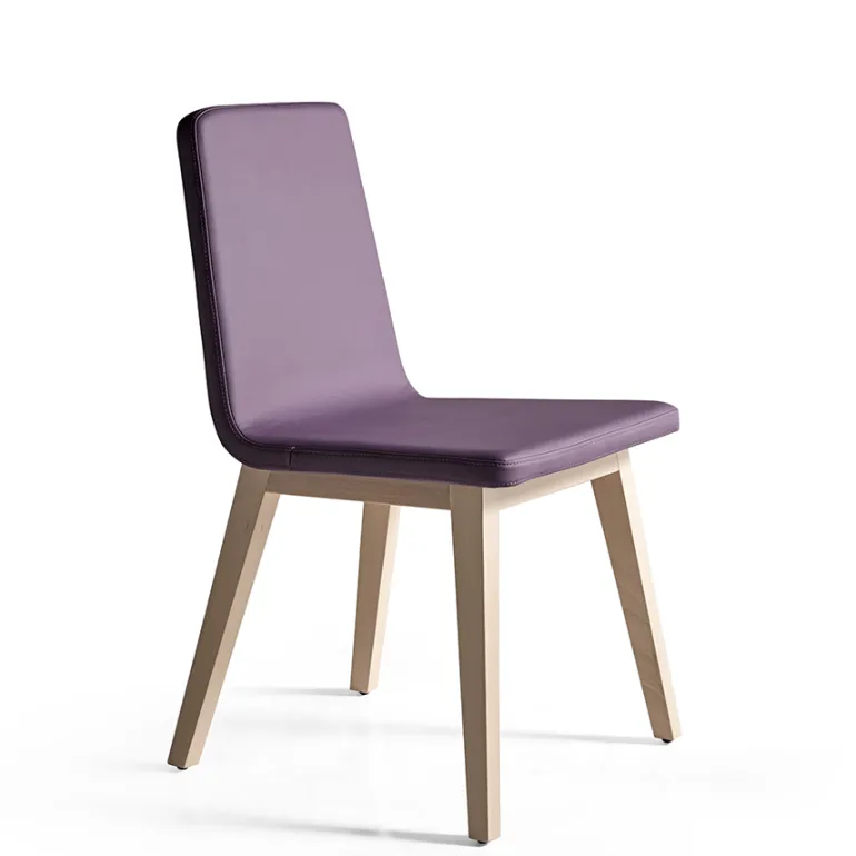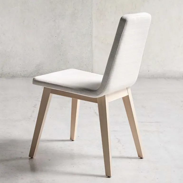 Silla Amici de comedor con asiento y respaldo tapizado acolchado, patas de madera de haya maciza muy resistente, en 4 tonos de diferentes a escoger. Y diferentescolores de tapizado a escoger.