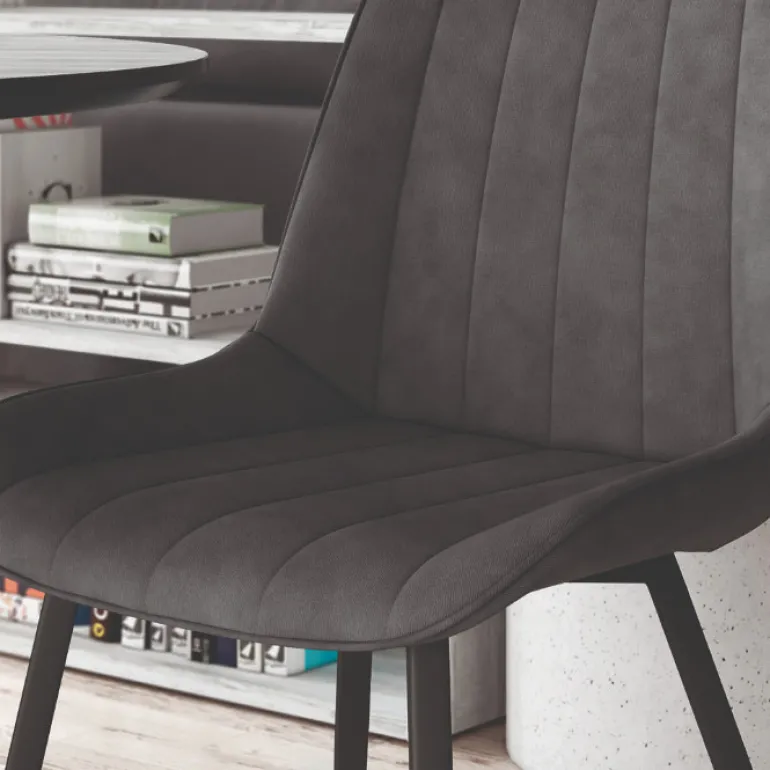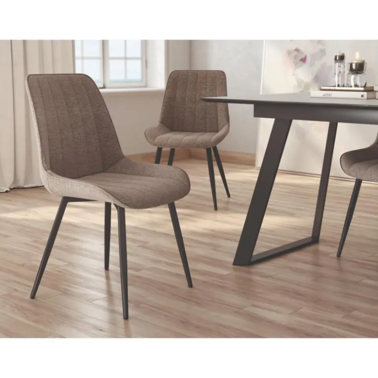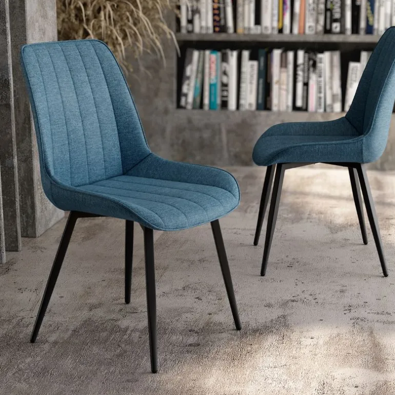 Silladecomedortapizada, patas metlicas negras muy resistente. Con un diseño muy actual, de estilo moderno, pero que encaja en cualquier tipo de decoración a la perfección. Escoge la combinación que encaje mejor con tu estilo, de las posibles combinaciones diferentes de colores: Crema, Perla, Marengo, Marrón, Salmón, Mostaza, Verde, Azul y Gris Claro.
