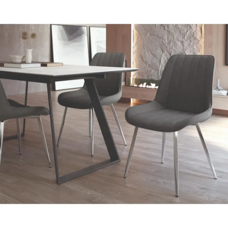 Silladecomedortapizada, patas cromadas muy resistente. Con un diseño muy actual, de estilo moderno, pero que encaja en cualquier tipo de decoración a la perfección. Escoge la combinación que encaje mejor con tu estilo, de las posibles combinacionesdiferentes de colores: Crema, Perla y Marengo.