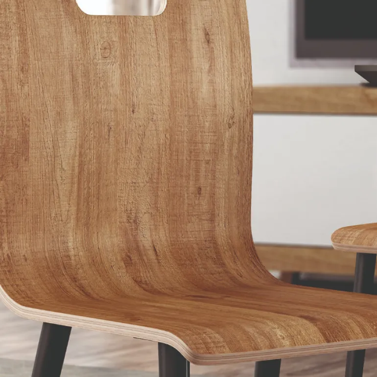 silla Bennett de comedor con respaldo de madera curvado, asiento tapizada gris, y patas metálicas negras muy resistente. Con un diseño muy actual, de estilo moderno, pero que encaja en cualquier tipo de decoración a la perfección. Escoge la combinación que encaje mejor con tu estilo, de las posibles combinacionesdiferentes de colores de respaldo: Soul Blanco, Cambrian, Artik, Roble o Mango.