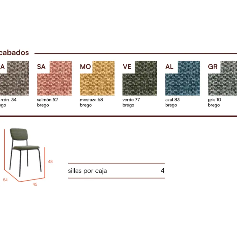| Color | Azul, Gris, Marrón, Mostaza, Salmón, Verde |