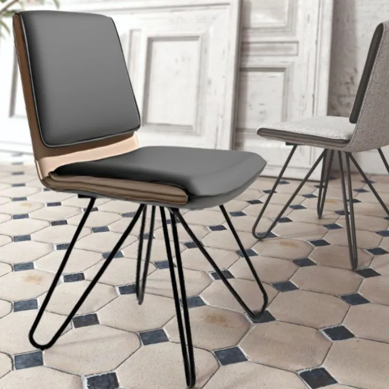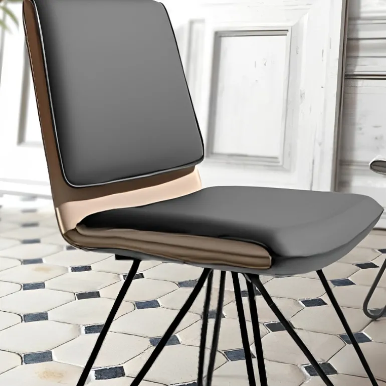 silla city, de comedor con asiento y respaldo tapizado, patas metálicas negras muy resistente. Muy original, única y de gran comodidad. Con un diseño muy actual, de estilo moderno, pero que encaja en cualquier tipo de decoración a la perfección. En una combinación de colores que casan muy bien y la última en decoración: gris-beige.