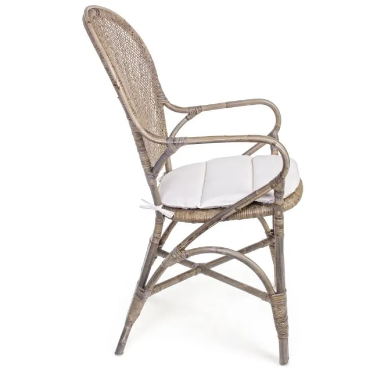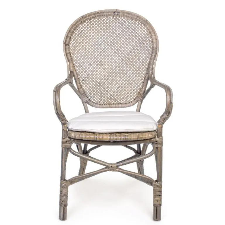 Bonita silla con ratán natural y original con reposabrazos.