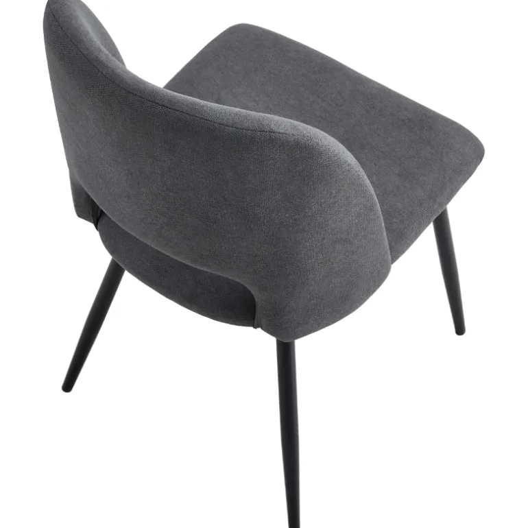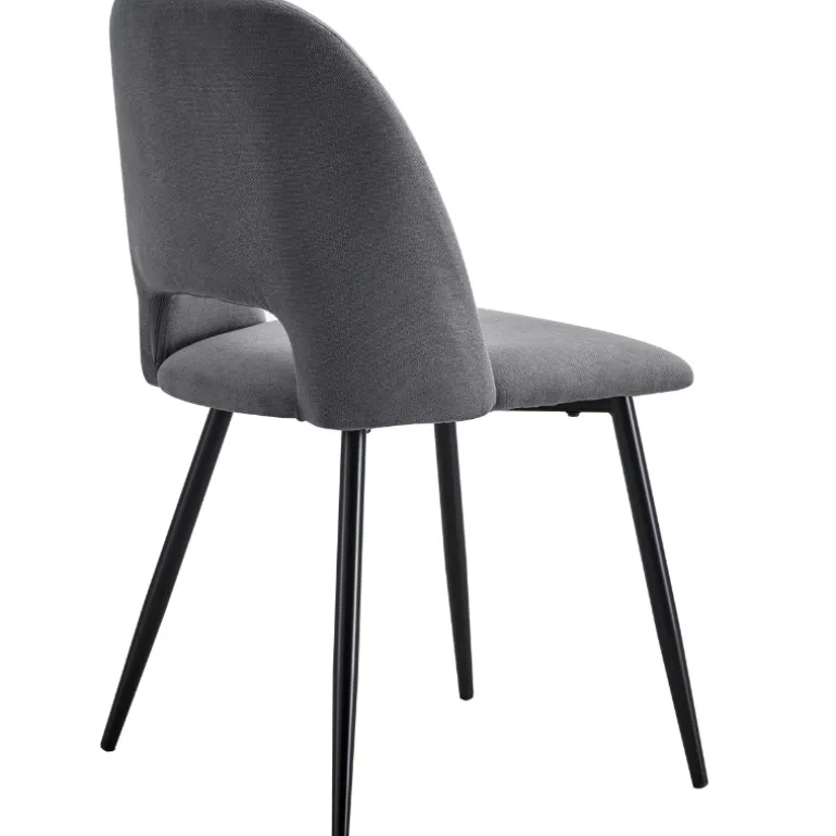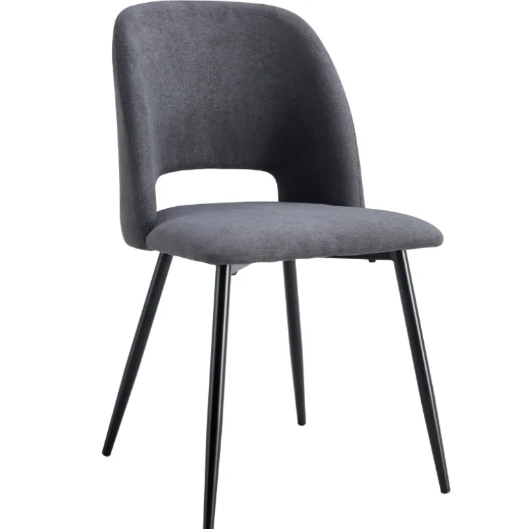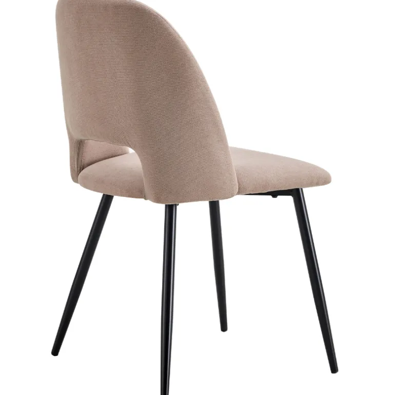 Silla de comedor moderna con asiento y respaldo tapizado en tela Beige y Gris Oscuro a escoger, con acolchado en asiento y respaldo, con patas metálicas negras. Muy cómoda y cálida, a la par que elegante, que combina con todo tipo de estilos. Perfecta para pasar largas sobremesas sentado en ella.