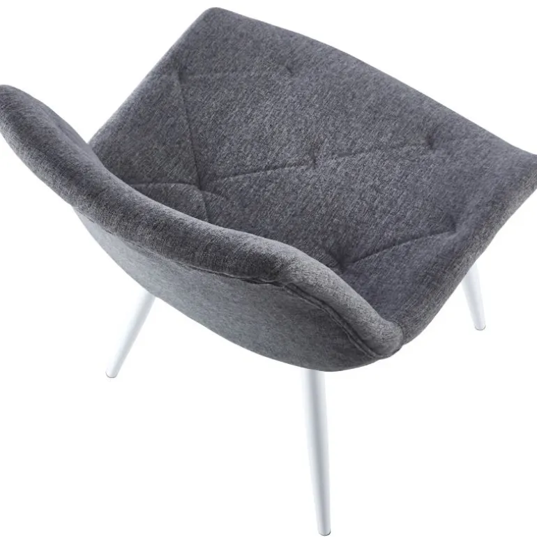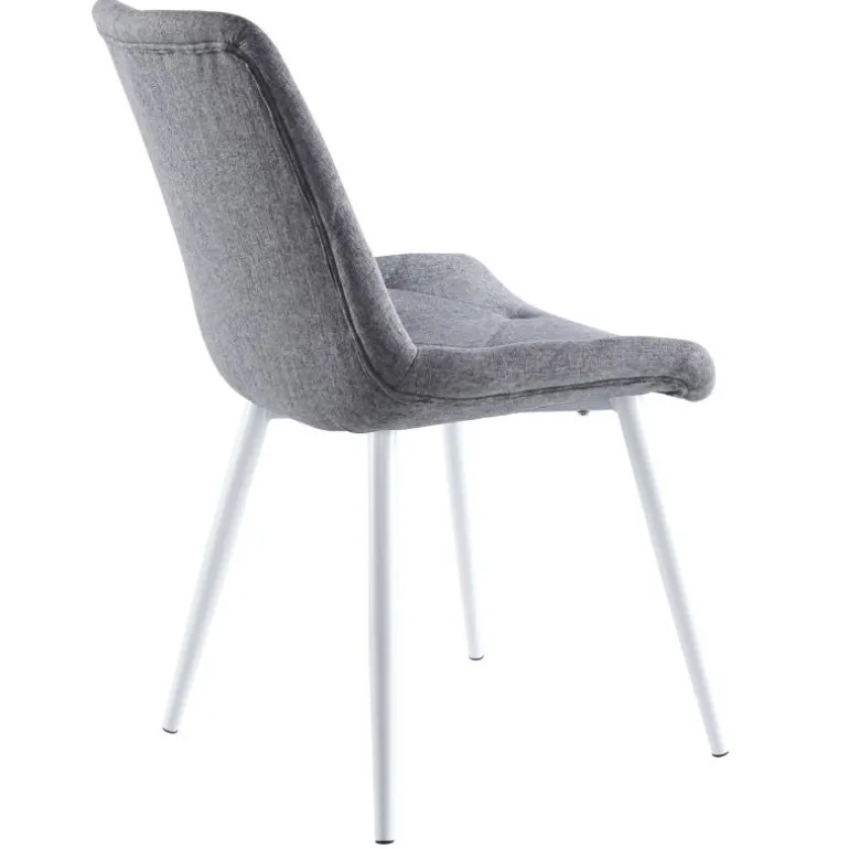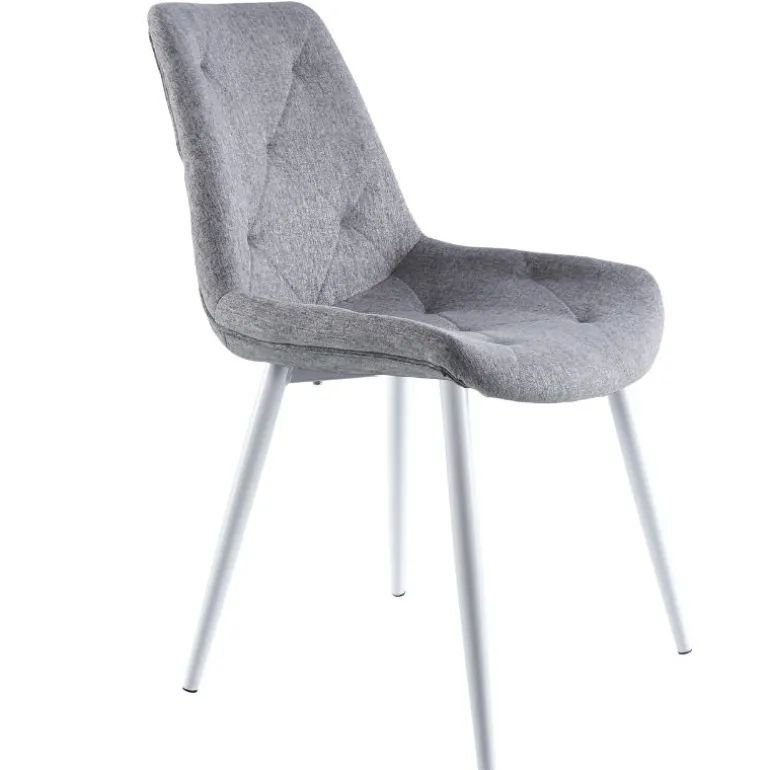 Silla de comedor moderna con asiento y respaldo tapizado en tejido Blanco o Gris a escoger, con estructura y patas metálicas blancas. Muy cómoda y cálida, a la par que elegante, que combina con todo tipo de estilos. Perfecta para pasar largas sobremesas sentado en ella.